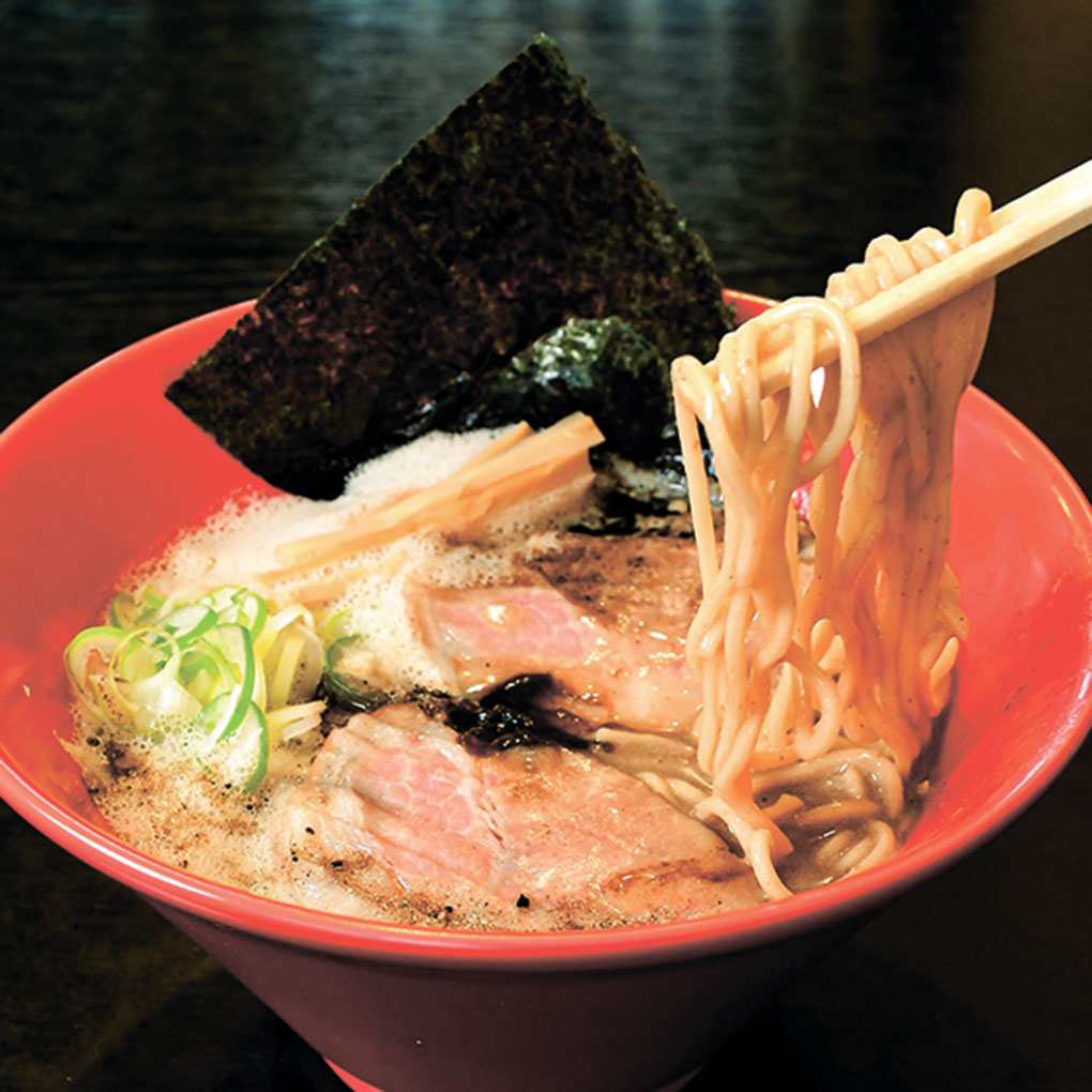 豚骨や鶏ガラ、魚介の出汁に焦がしニンニクの香ばしさを重ねた濃厚スープが、ハルユタカとゆめちからで作る特製麺にしっかり絡みます!パンチのあるマー油の重厚なコクと後を引く余韻に、きっとまた食べたくなるはず。