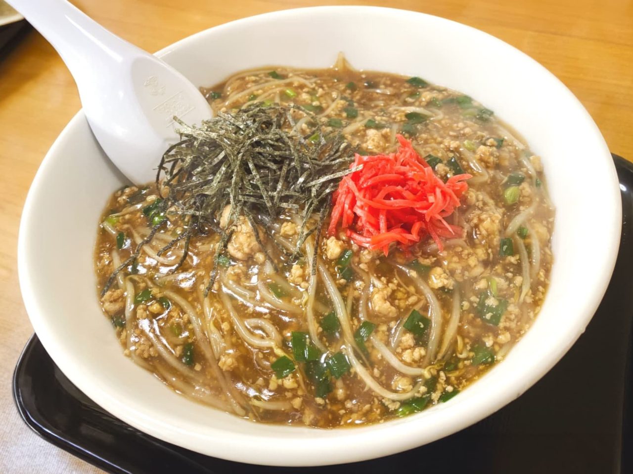 ひき肉ともやし、ニラがたっぷり入った餡はまろやかで、女性でも食べやすい一杯! 刻み海苔と紅ショウガを混ぜて食べるのが店主のおすすめ。ボリューム満点のチキンソテー定食やカツ定食も人気のお店です。