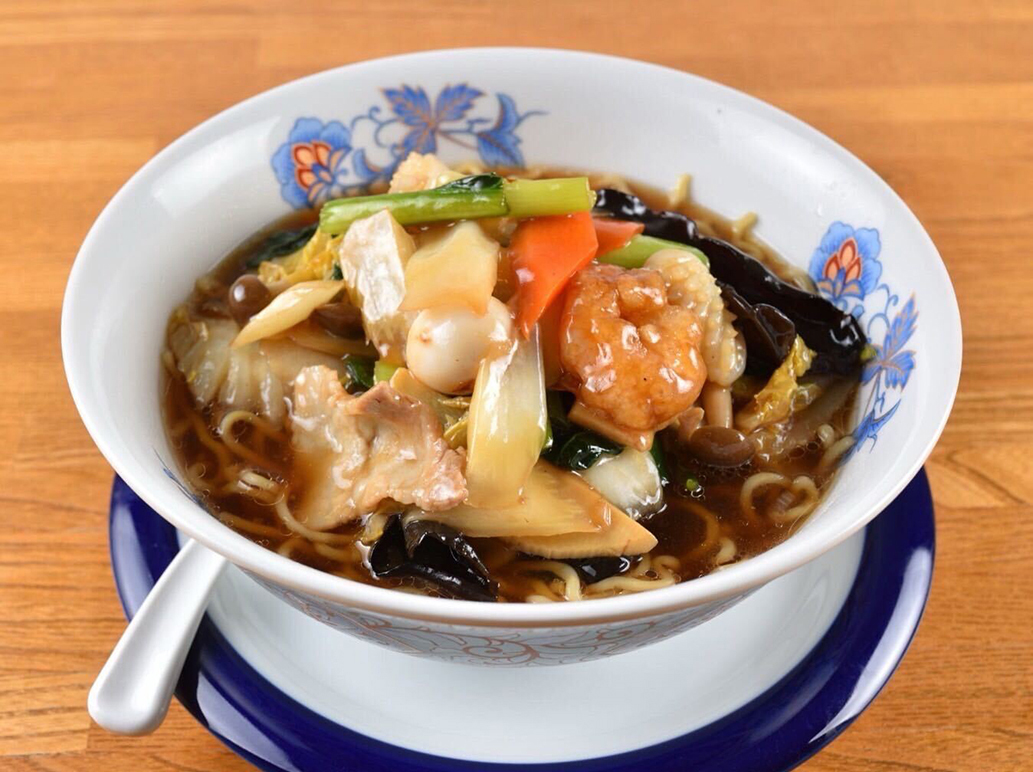 醤油ベースのあっさりとしたスープに、たっぷりの野菜、イカ、エビ、豚肉などが絶妙に絡む、栄養満点&食べごたえも抜群の一杯。心も身体も温まる萬彩自慢のラーメンをご賞味ください。スタンプは3店舗共有なので、お好きなお店にご来店ください。